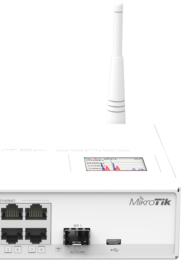 MikroTiK CRS109-8G-1S-2HnD-IN, 600 Mhz işlemci, 128MB RAM, 1 Adet SFP slotu, 8 adet Gigabit ethernet portu, 1000 Mw 2.4 GHz 300MBPS radyo kartı ile 60 - 80 aktif kullanıcısı bulunan orta ölçekli ağ yapıları için hepsi bir arada çözüm sunmaktadır. Ürün LAYER 3 Switch özelliklerinin tamamını sunmakla birlikte Standart RouterOS işletim sisteminin tüm özellikleri ile birlikte gelmektedir. Orta ölçekli ağların tüm ihtiyaçlarını karşılayacak benzersiz teknik donanımı ve RouterOS işletim sistemi ile ağ yönetiminizi hiç olmadığı kadar esnek hale getirebilirsiniz.