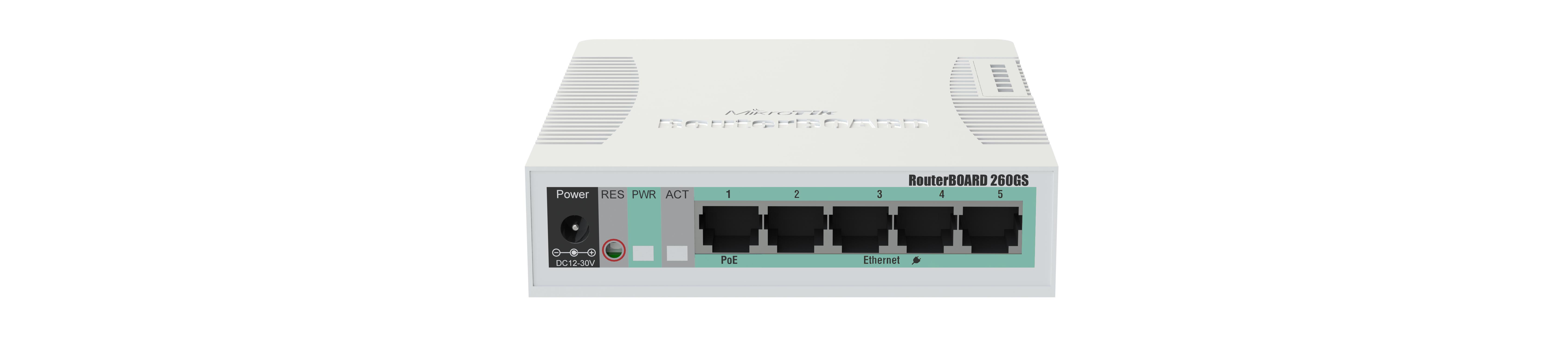 Mikrotik CSS106-5G-1S | En iyi fiyat, stok bilgisi ve teknik özelliklerMikrotik 260GS standart Swtich özelliklerinin yanı sıra Port-to-port fowarding, Broadcast Storm Control, MAC filtreleme, VLAN, Traffic mirroring, bant genişliği sınırlama gibi ilave özellikler sunmaktadır.