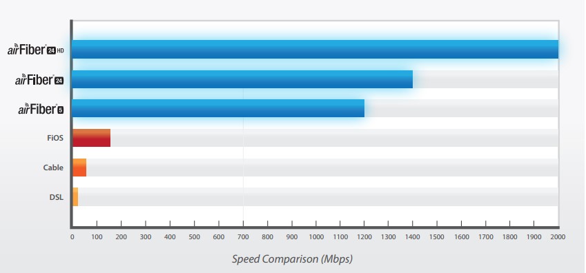Ubiquiti, özel tasarladığı IÇift radyo kartlı yenilikçi tasarımı ile AirFiber™ ürünlerinde saniyede 1 Milyon paket taşıma imkanı üretmektedir.Aynı zamanda Dijital distorsiyon telafisi ve Karışık sinyal ayrıştırma (IFFT) işlemleri ile Lisans gerektirmeyen radyo frekanslarında meydana gelecek potansiyel kirlilik olasılıklarını azaltır ve bu frekans aralıklarında 64QAM gibi yüksek modülasyon kullanımlarına imkan sağlar.