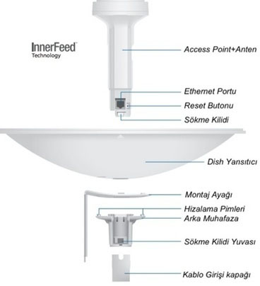 "PowerBeam NBE-400", Ubiquiti markasına özgü "InnerFeed™"(DISH anten ortasına konumlandırılmış Dahili antenli Access point mantığı) tasarımı sayesinde anten ile Erişim noktası (Access Point) arasında bir kablo bağlantısına ihtiyaç duymadan çalışabiliyor. Bu tasarım anten ile Erişim noktasını kablo ile bağladığınız geleneksel montaj şeklinde yaşanan verimlilik kaybını ortadan kaldırır. NanoBeam hızlı işlemcisi, yenilikçi tasarımı ile çok yönlü kullanım alanı sağlayan fiyat performans ürünüdür.