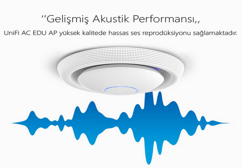 2.4GHz frekansında 450Mbps bant genişliği sağlayan ürün 5GHz bandında ise 1300 Mbps bant genişliği sağlamakla birlikte 200+ aktif kullanıcıya kadar kesintisiz hizmet sağlayabilmektedir. UBNT UniFi UAP AC EDU genel olarak UAP AC-PRO modeli ile aynı verimliliği sunarken ilave olarak Dahili Anons Hoporlörü ile sunulmaktadır.